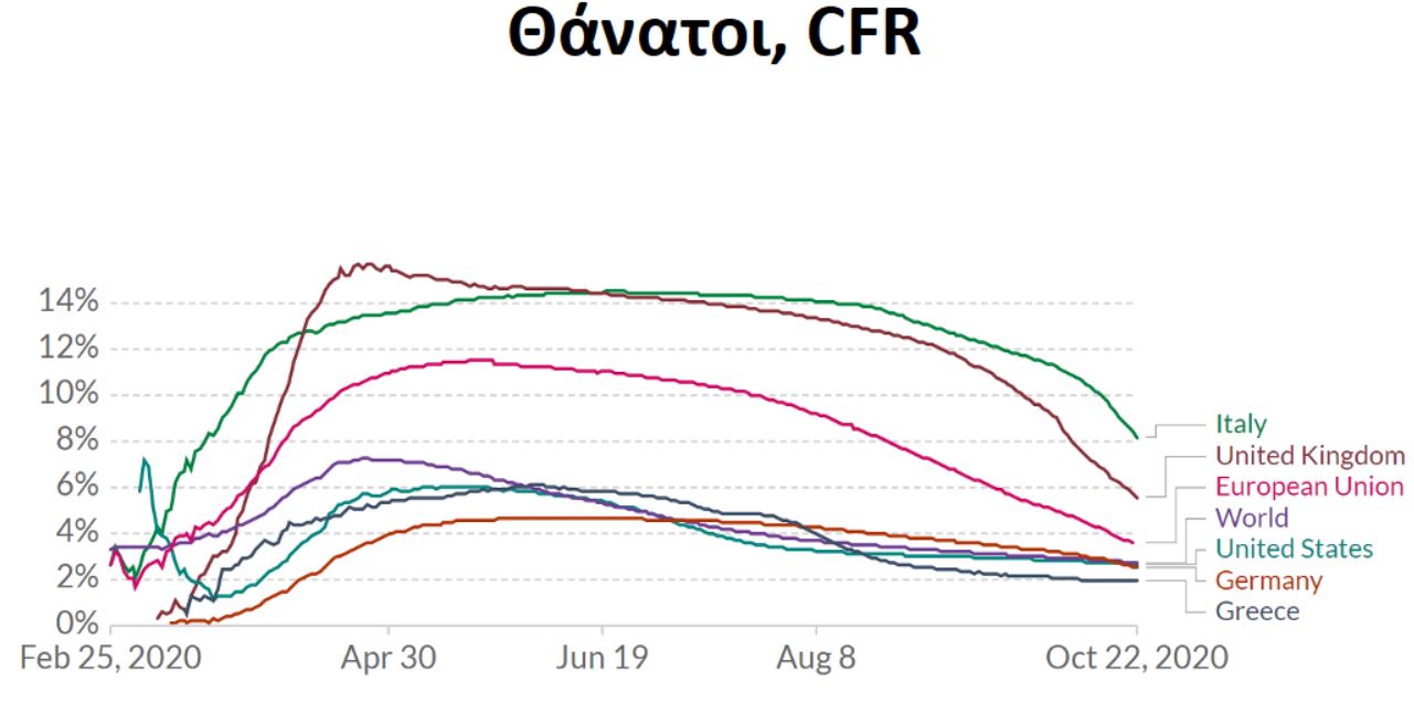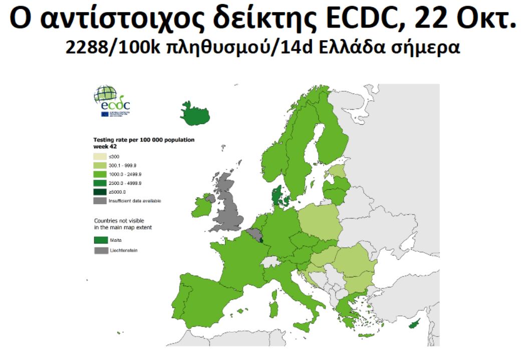 Πρόκειται για τα στοιχεία που εμφανίζουν το ποσοστό των θετικών δειγμάτων ανά αριθμό διενεργούμενων τεστ. Η Ελλάδα βρίσκεται στο 3,6%.
