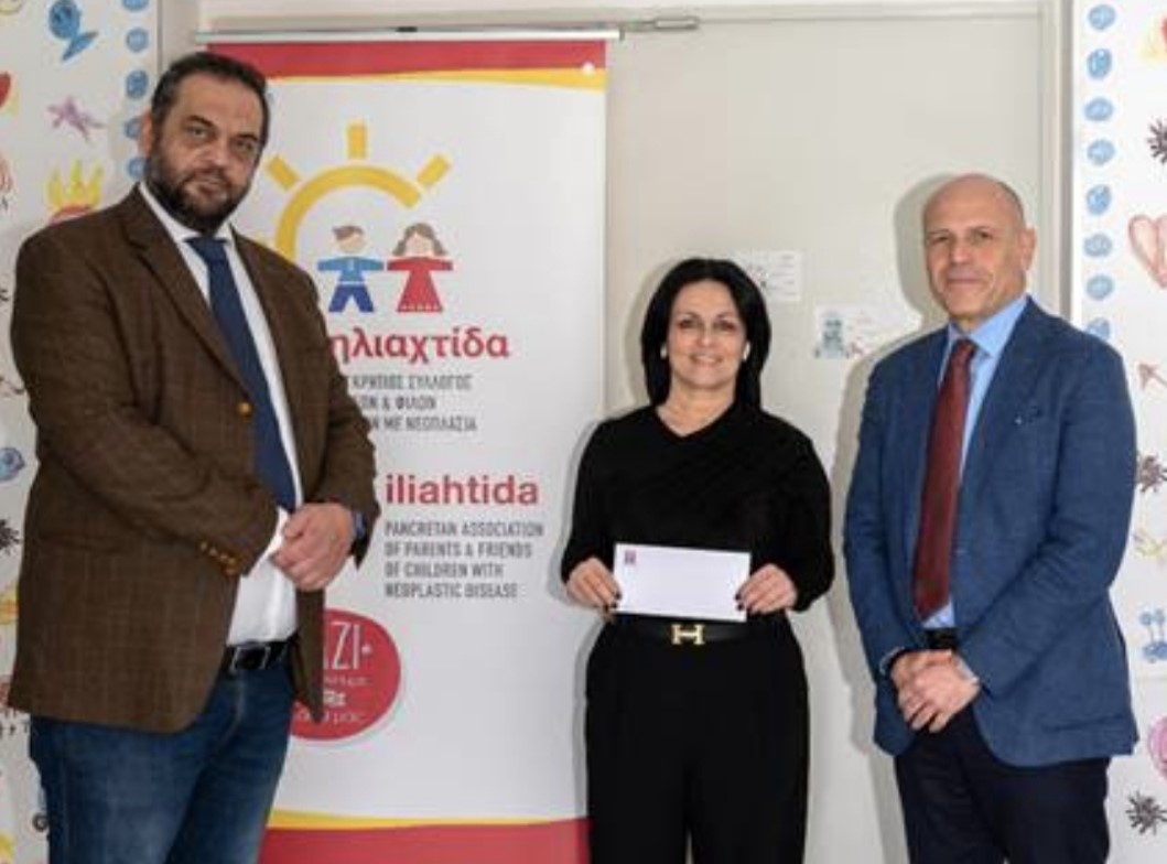 Η απόδοση της δωρεάς που προαναφέραμε (5000,00€) πραγματοποιήθηκε στο πλαίσιο συνάντησης στον Ξενώνα Φιλοξενίας «η Hλιαχτίδα», που βρίσκεται στο Πανεπιστημιακό Γενικό Νοσοκομείο Ηρακλείου (Πα.Γ.Ν.Η.), παρουσία του Αναπληρωτή Διοικητή του Πα.Γ.Ν.Η. κου Στέλιου Κτενιαδάκη.